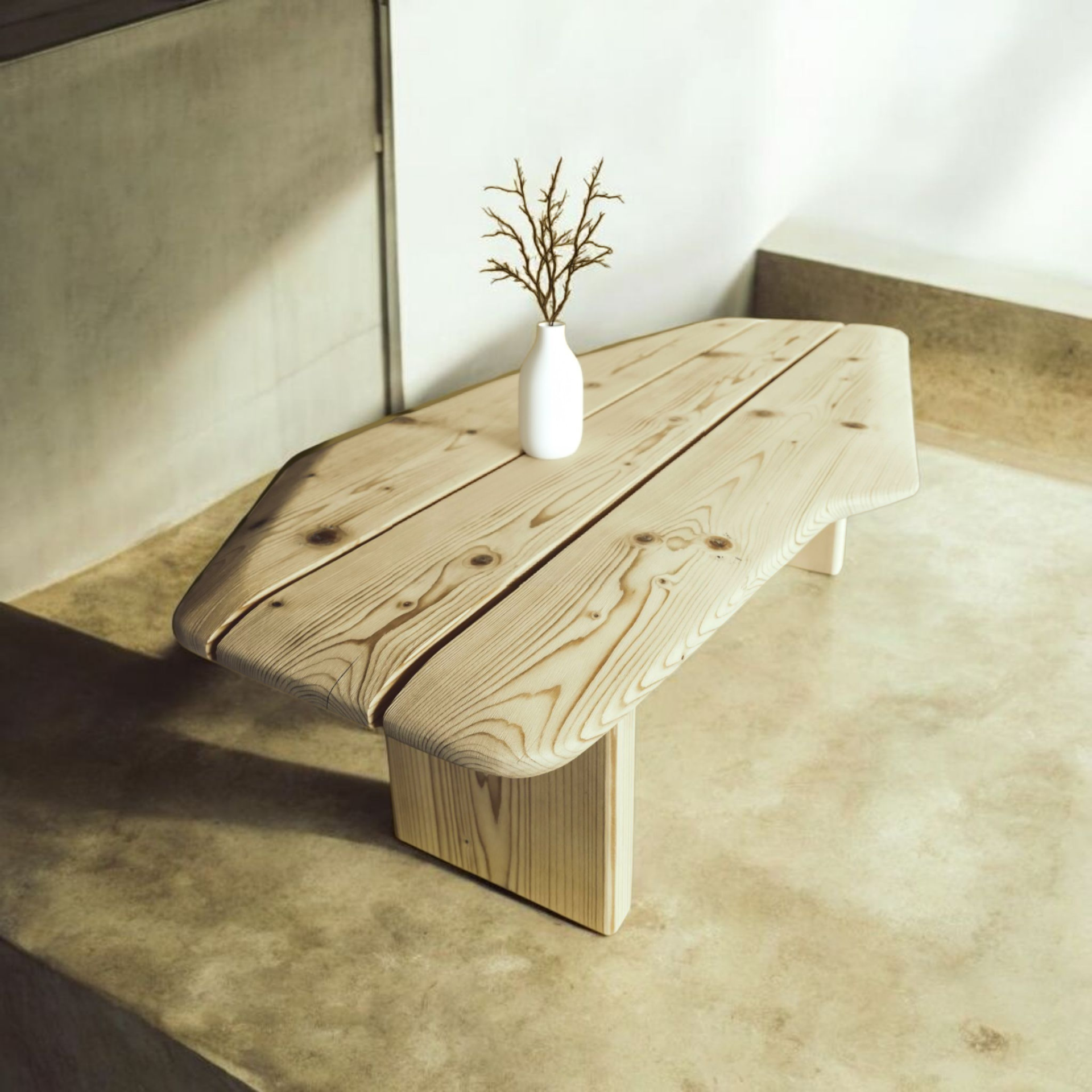 - Βάση: Δύο κάθετα ξύλινα πάνελ σε σχήμα "π" που προσφέρουν σταθερότητα και minimal χαρακτήρα