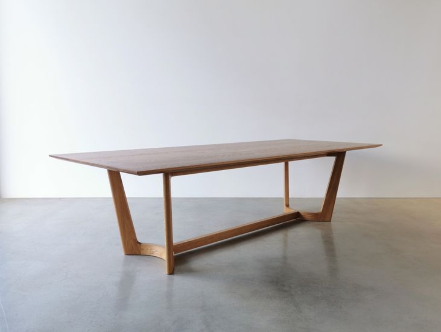 Μοναδικής σχεδίασης ξύλινη βάση, με καμπύλες και γωνίες που σχηματίζουν ένα διακριτικό αλλά στιβαρό στήριγμα. Η δομή συνδυάζει λειτουργικότητα με αισθητική, προσδίδοντας χαρακτήρα χωρίς να «φορτώνει» οπτικά τον χώρο.