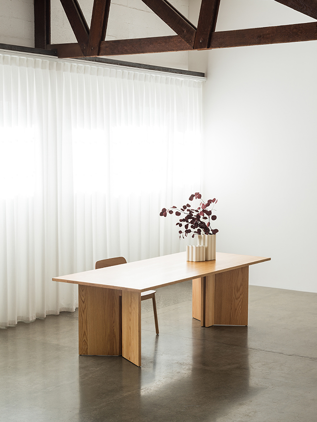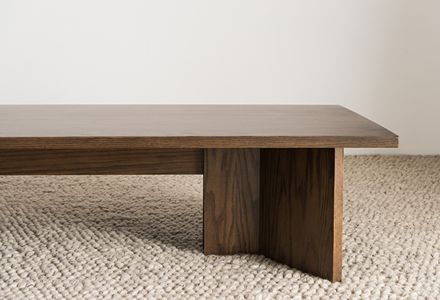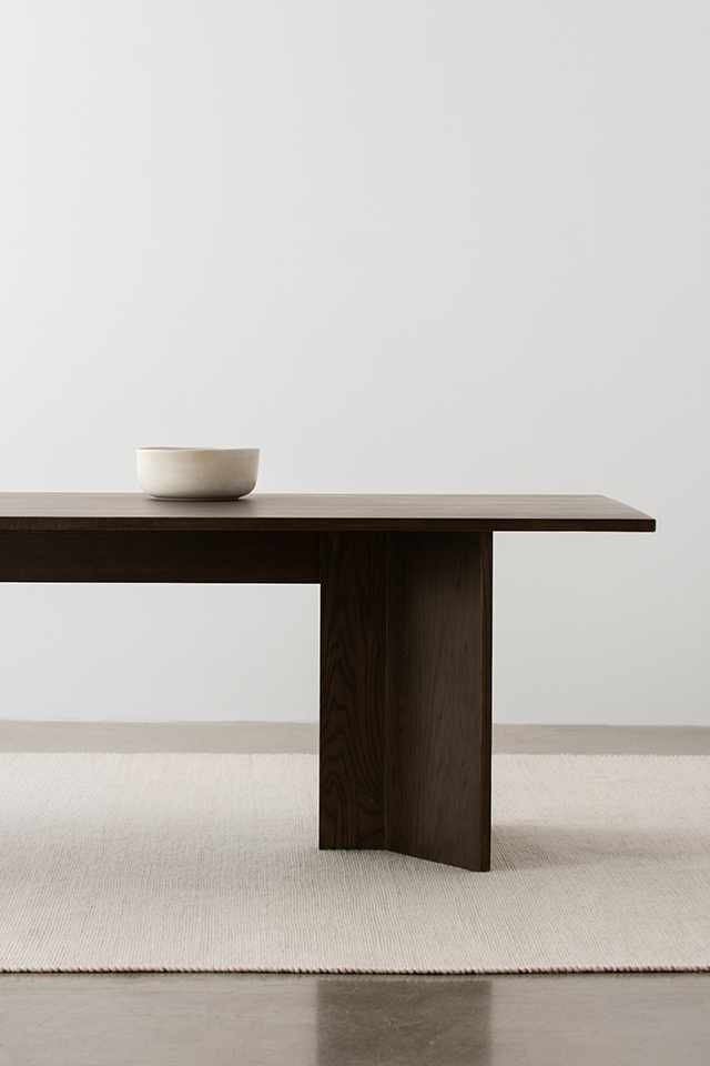 Η επιφάνεια και οι βάσεις σχηματίζουν γεωμετρικά, αυστηρά επίπεδα, χωρίς καμπύλες ή περιττά διακοσμητικά στοιχεία.