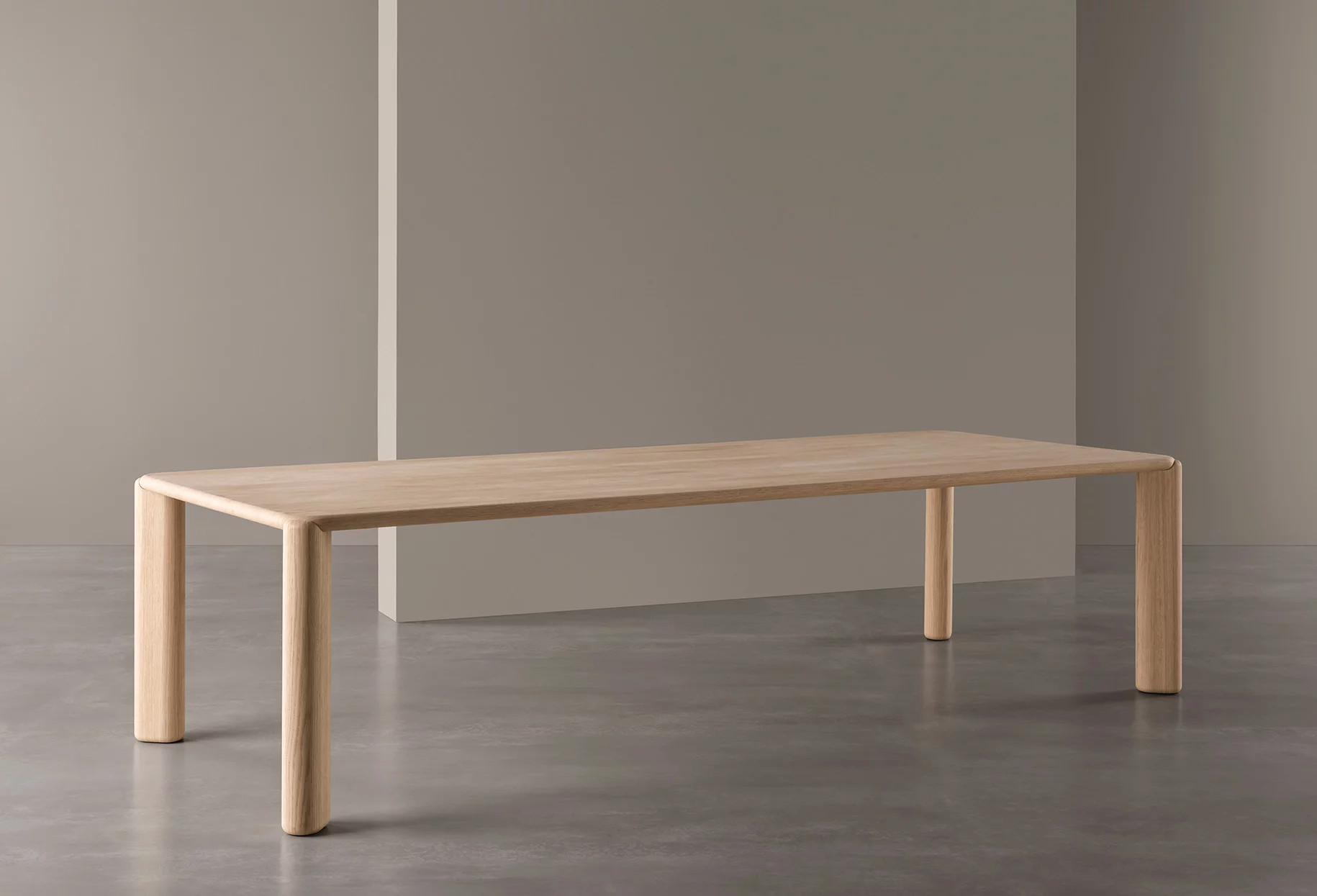 - Οργανικός Σχεδιασμός: Η επιφάνεια του τραπεζιού διαθέτει μοναδικά σμιλεμένες, στρογγυλεμένες γωνίες που προσδίδουν μια αίσθηση ροής και ασφάλειας στον χώρο.
