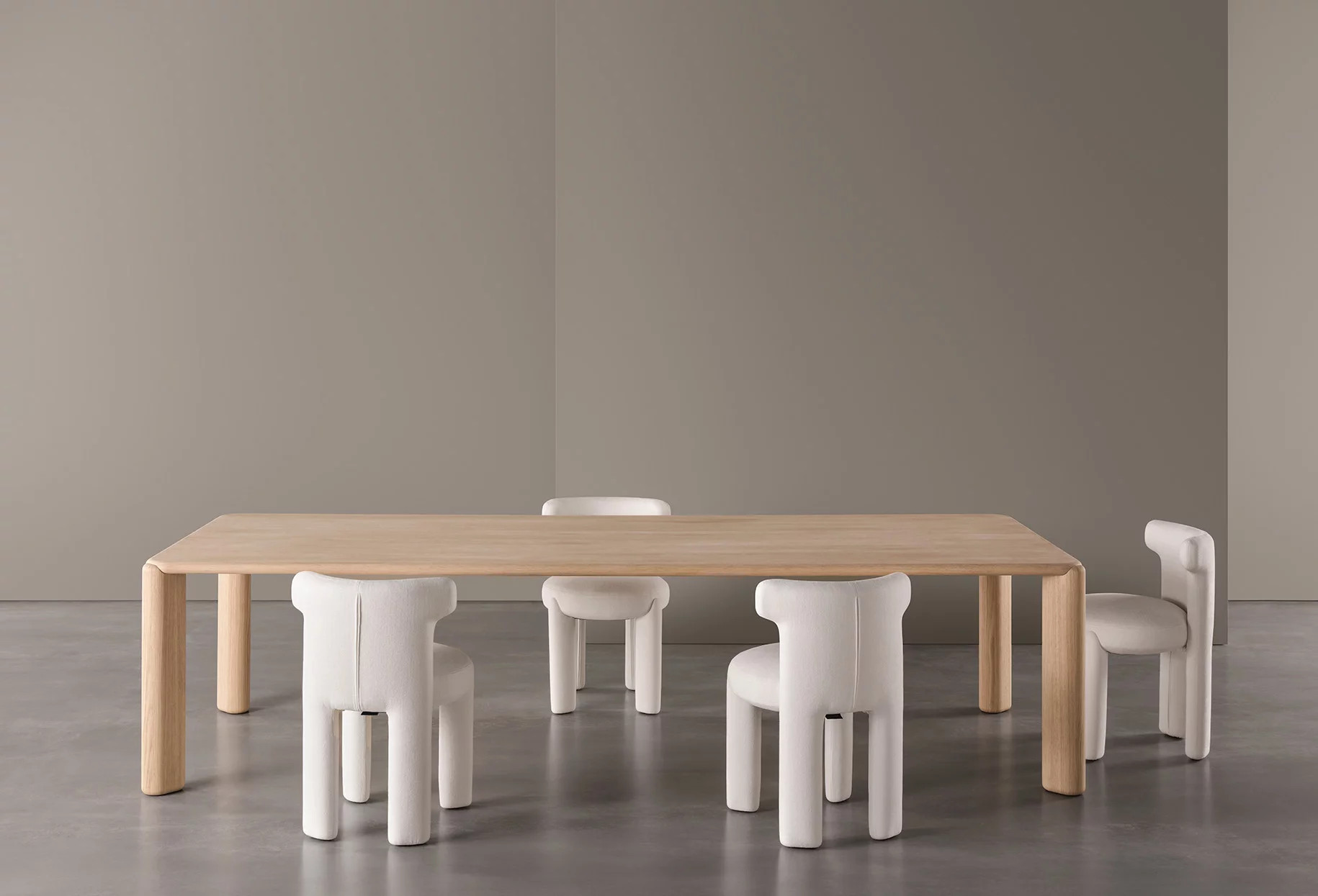 Αναβαθμίστε την αισθητική του χώρου σας με μια τραπεζαρία που συνδυάζει την απαλότητα των καμπυλών με τη στιβαρότητα του φυσικού ξύλου. Ο μινιμαλιστικός σχεδιασμός της την καθιστά ένα διαχρονικό κομμάτι, ικανό να σταθεί ως το κεντρικό σημείο αναφοράς σε κάθε μοντέρνο σπίτι.