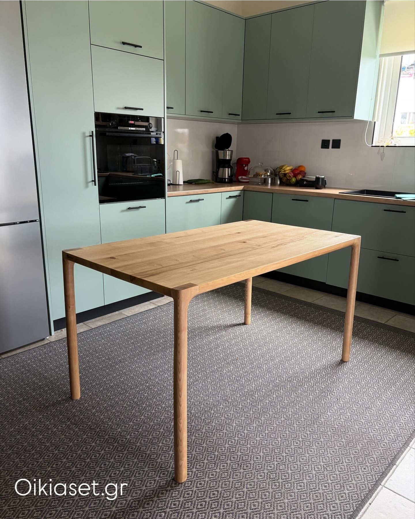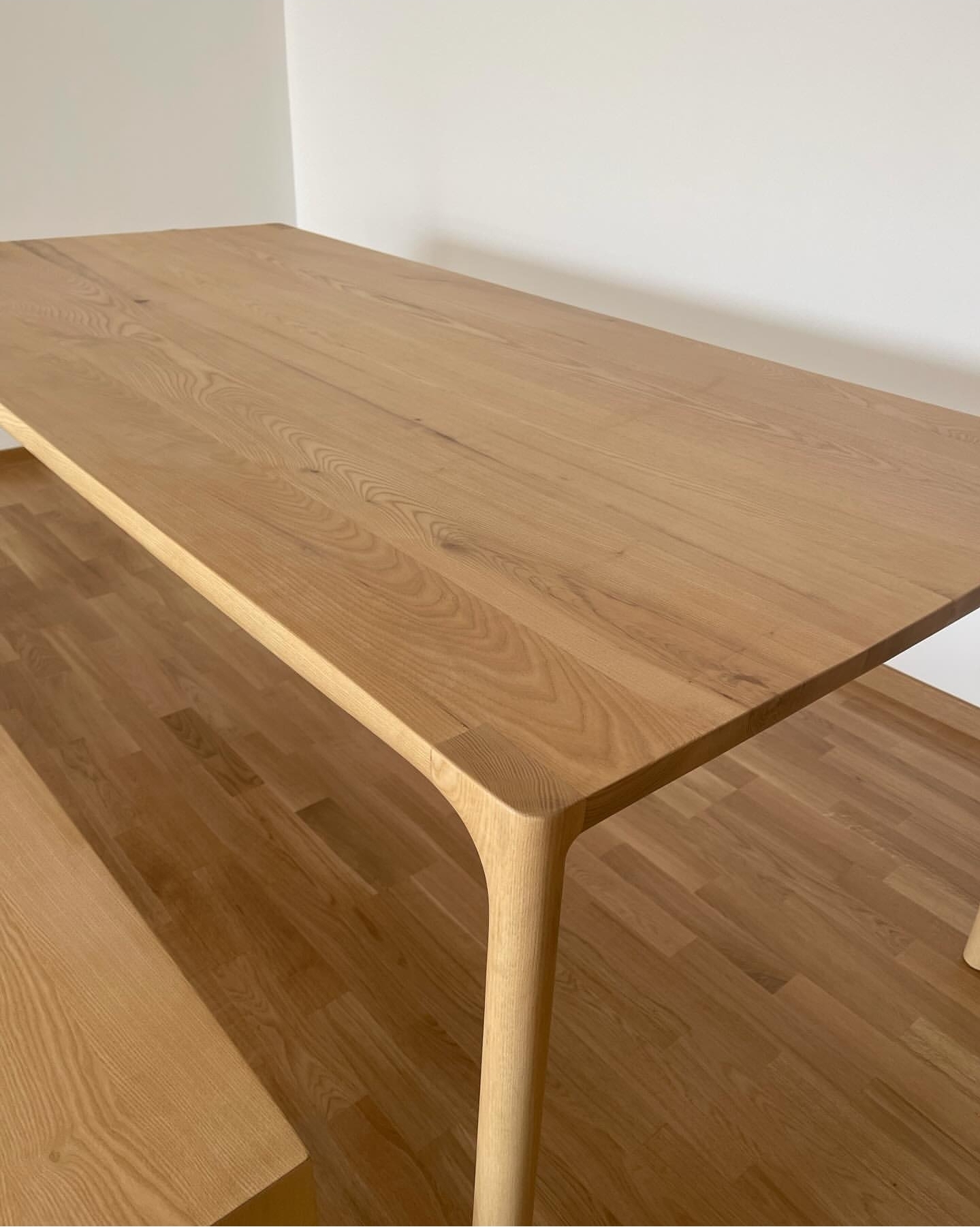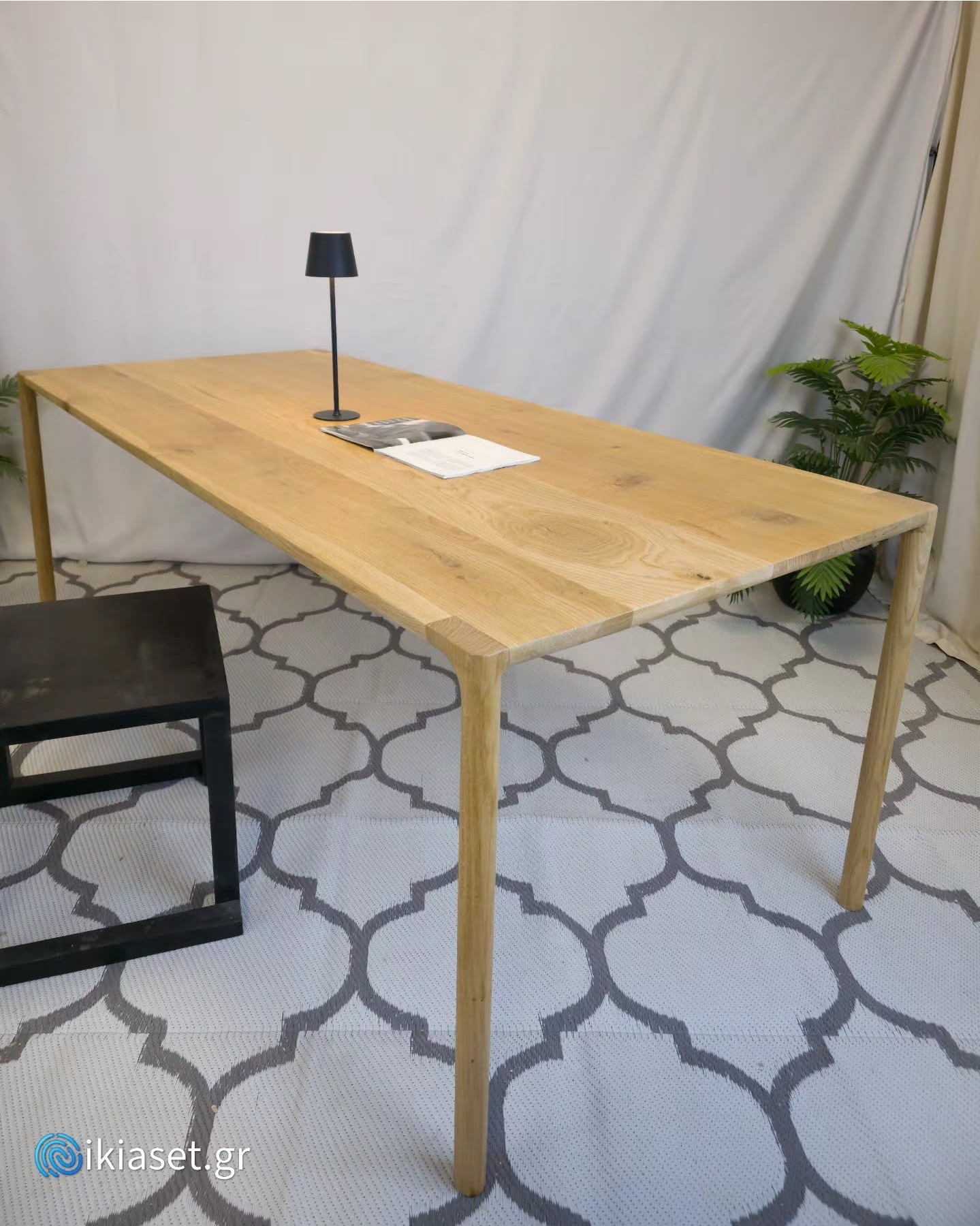 Φινίρισμα: Η χρήση ματ βερνικιού ή λαδιού αναδεικνύει τη φυσική υφή του ξύλου, διατηρώντας την "ωμή" και ζεστή αίσθηση του υλικού.