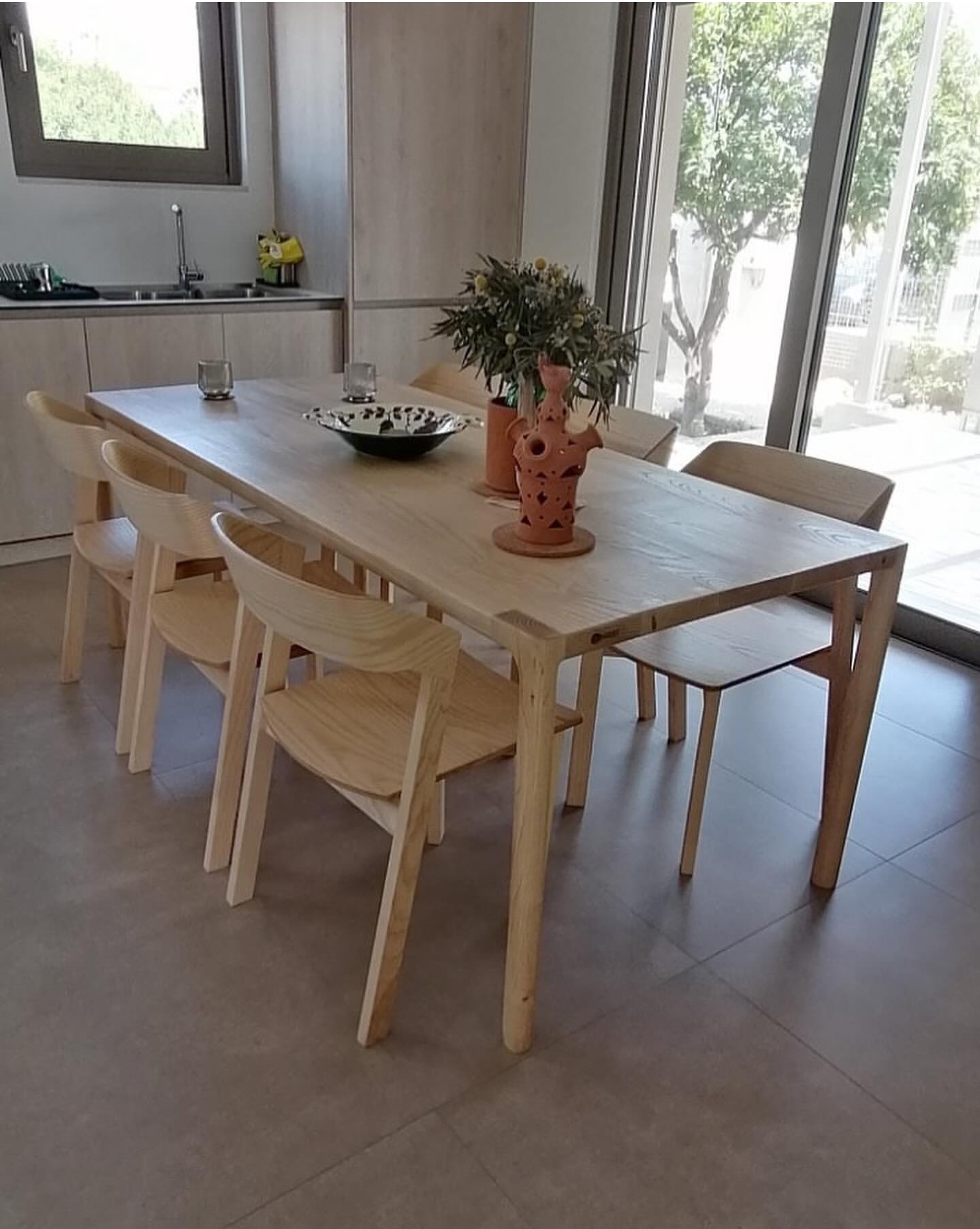 Αυτή η χειροποίητη τραπεζαρία αποτελεί την επιτομή του Minimalist Japandi σχεδιασμού, συνδυάζοντας τη σκανδιναβική λειτουργικότητα με την ιαπωνική αισθητική. Η κατασκευή από μασίφ ξύλο προσφέρει διαχρονική ανθεκτικότητα και μοναδικά νερά σε κάθε κομμάτι.